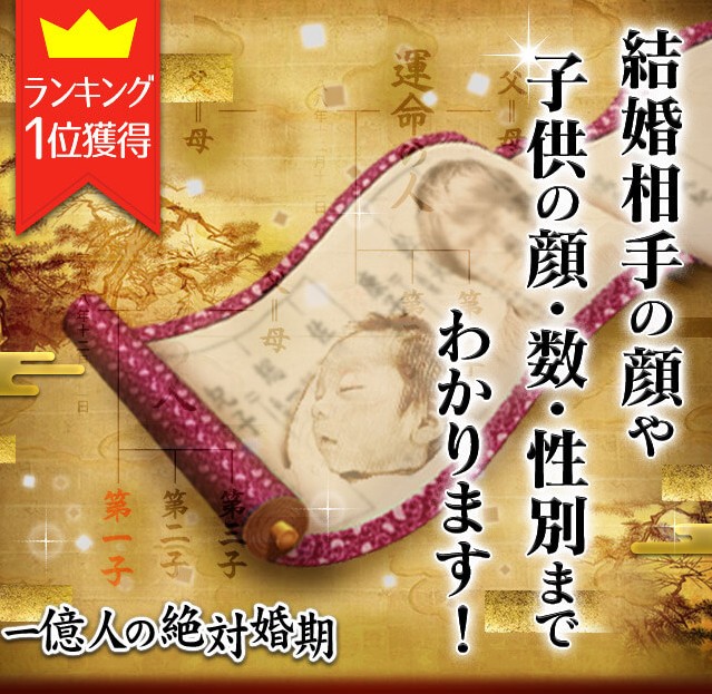 一億二千万人の姓名データ×生年月日により驚異の的中率を実現。運命の相手の≪顔画像≫付き特別占い!